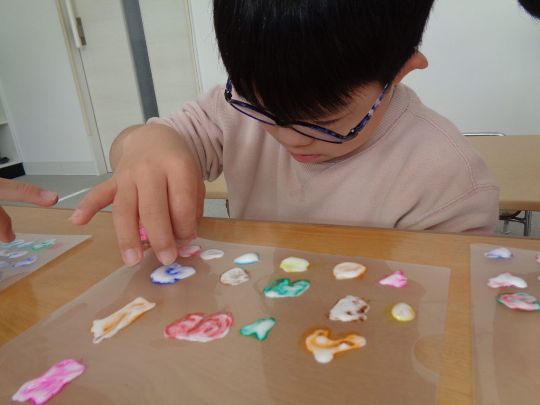 2025年12月6日 / 最終更新日時 : 2026年1月8日 放課後等デイサービス クリスマスキャンドルを作ろう クリスマスキャンドルを飾るためのシールつくりをしました。ボンドに色を付けて乾燥を待ちます。色とりどりのシールができあがりました。このシールをキャンドルを入れる容器に貼り付けます。幻想的なキャンドルになりますね。