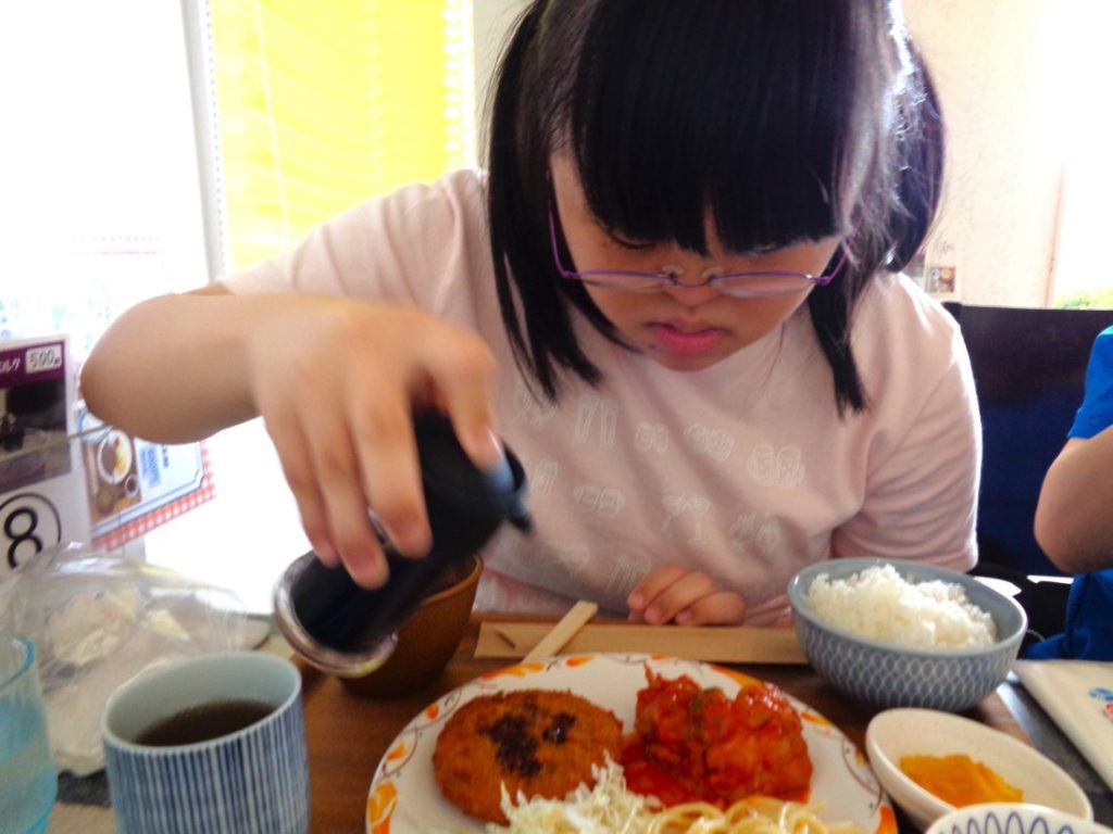 レインボーハウスに昼食を食べに行きました。「カレーライスが食べたい!」と言ってる子や「何を食べようかな…」と悩んでいる子がいました。子どもたちはメニューから自分の好きなものを選びましたよ。全員きれいに完食しましたよ。みんなで楽しく昼食を食べることが出来ました。
