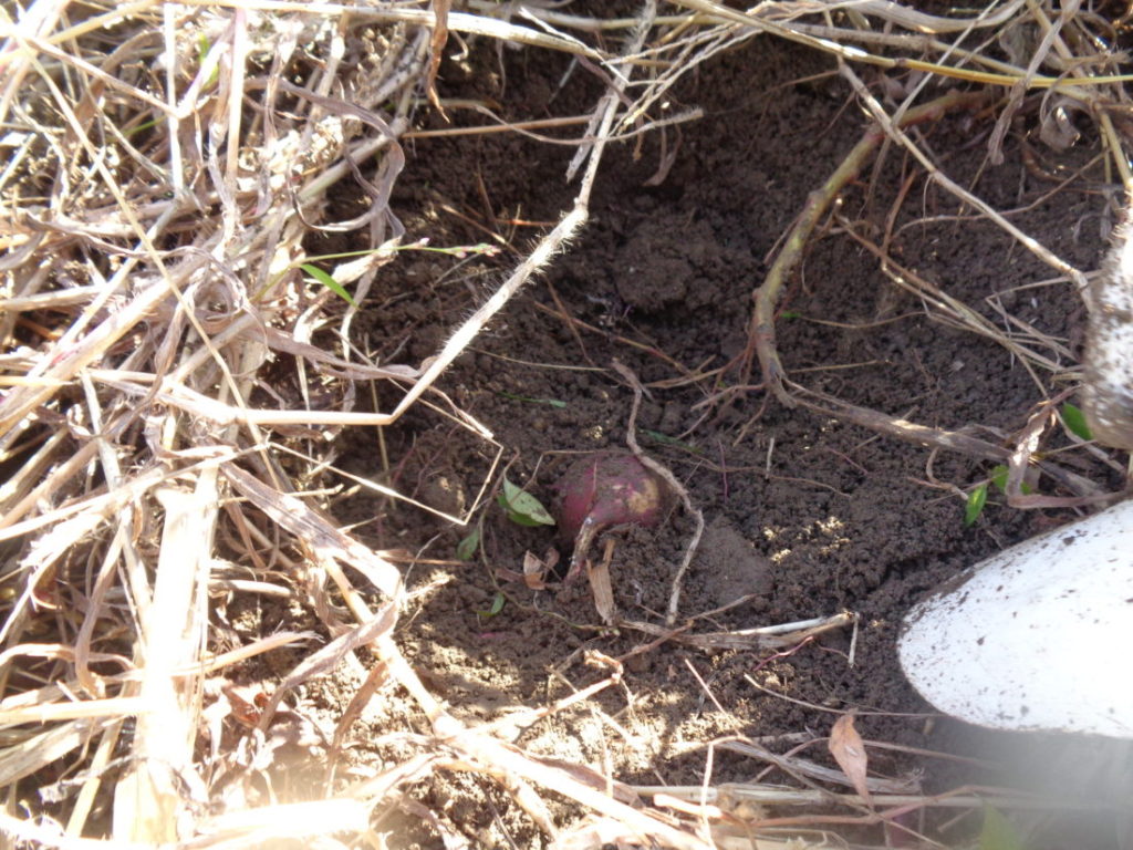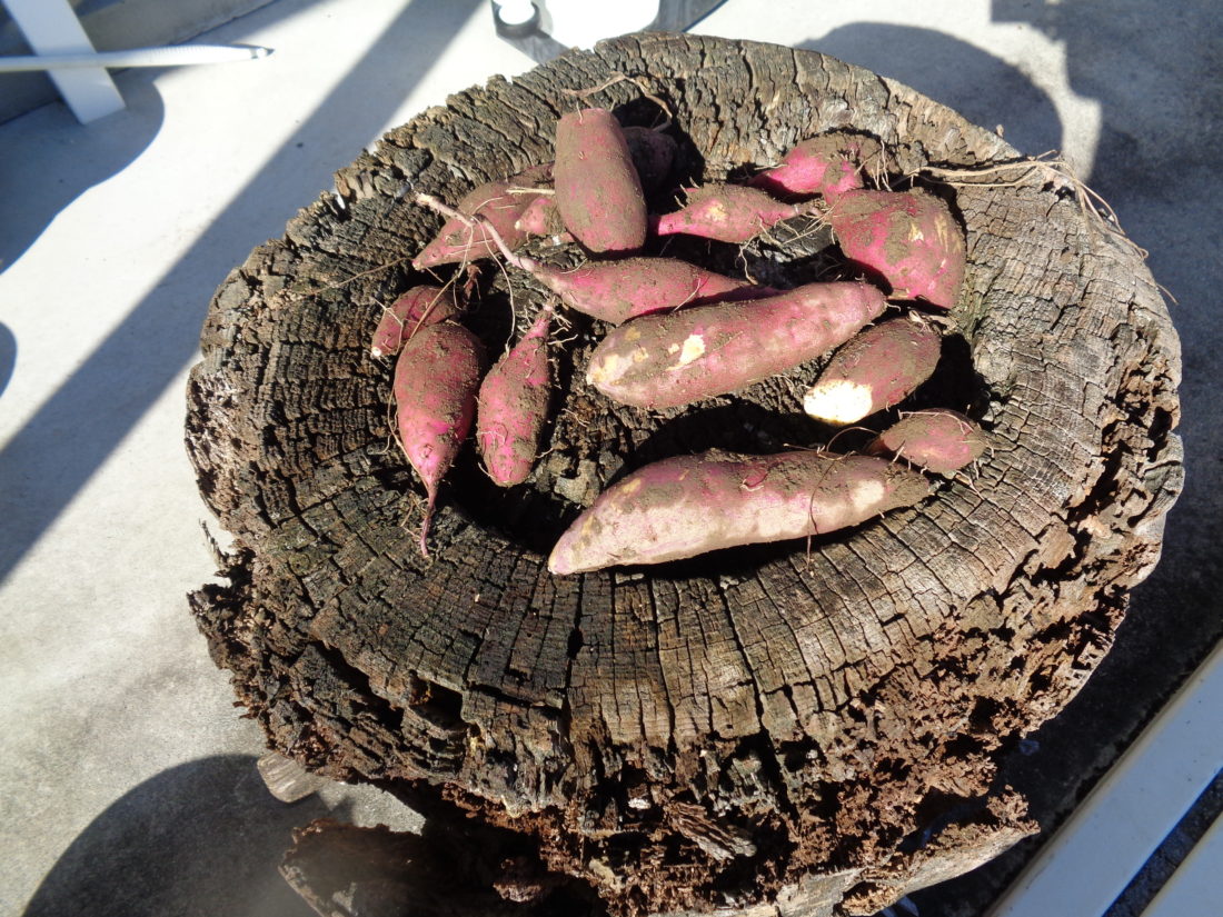 キッズの畑のさつまいも掘りをしました。いもつるをたよりにさつまいもを探します。土が固く、奮闘していました。小さなおいもから、げんこつより大きいいもまでたくさん取れました。折れたいもや小さいものは、ふかしいもにして、おやつにいただきました。残ったおいもは、次回のスイートポテト作りに使います。