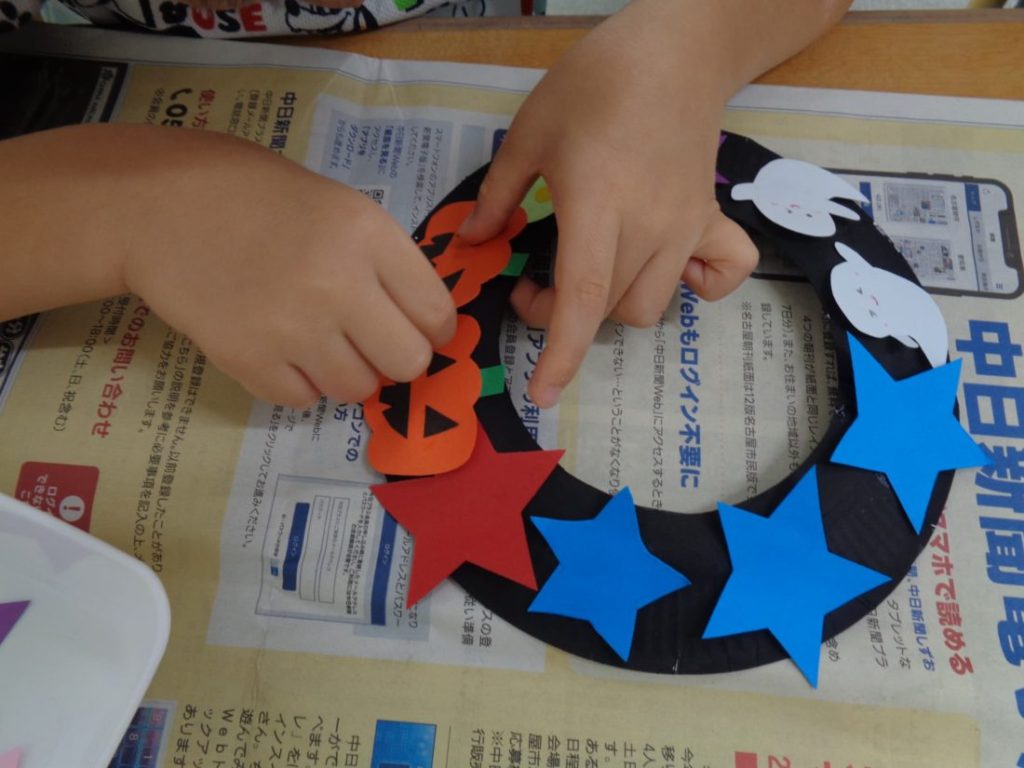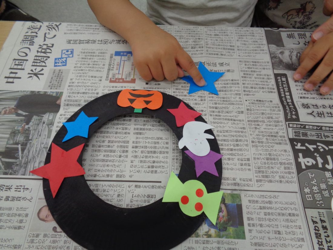 とってもかわいいハロウィンのリースに、大満足な子ども達です。