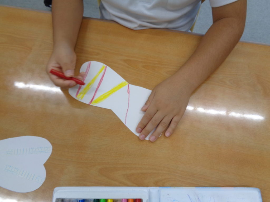 めがねの色を選び、羽根と合体させると、自分だけのとんぼが出来上がりました。