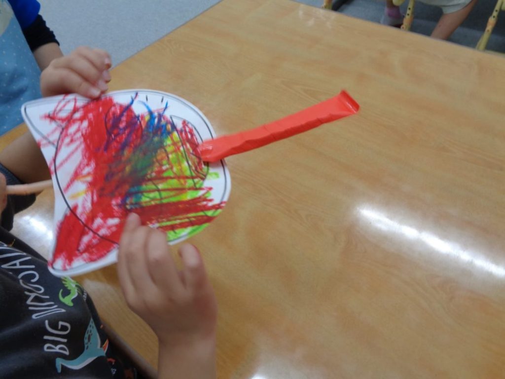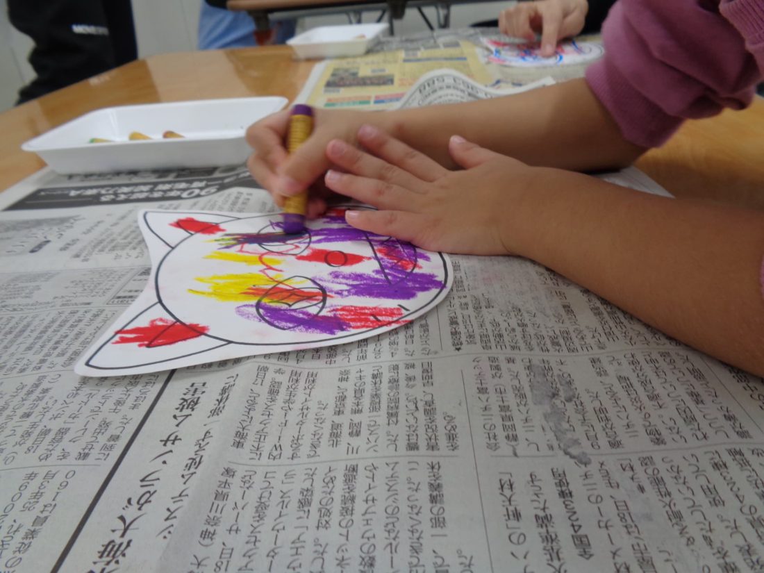 「目の色はこれで、口の色は…」と考えながら色を塗っていきます。