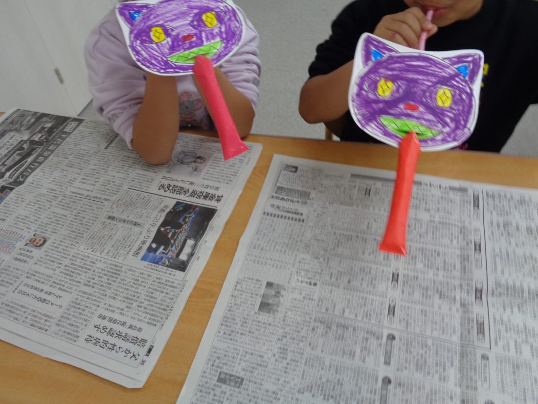 ストローをつけてフーッ!と息を吹き込むと、ベロが思いっきり伸びました。