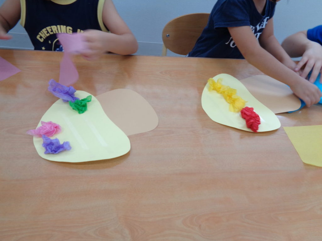 2025年9月8日 / 最終更新日時 : 2025年10月6日 児童発達支援 きのこ お花紙 朝夕の空気が少しだけ過ごしやすくなった9月。 今日は秋を感じるきのこの制作を行いました。 お花紙をやんわりと丸めて台紙に貼っていきます。 「せんせー赤(いお花紙)ちょうだい」と色を選んでいきました。 鮮やかなキノコのカサに、軸には自由に絵を描いて。 賑やかなきのこがキッズウェイブを彩っています。