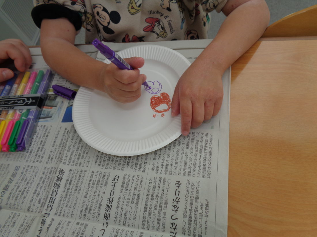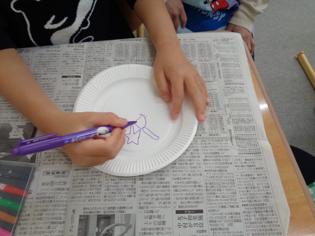 紙皿でコマを作りました。
