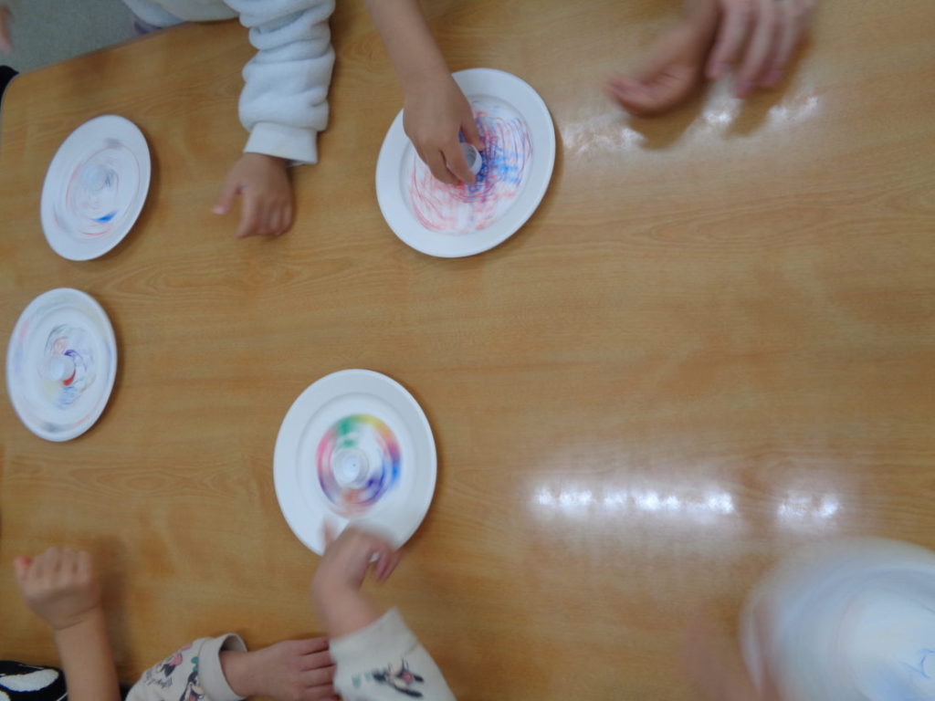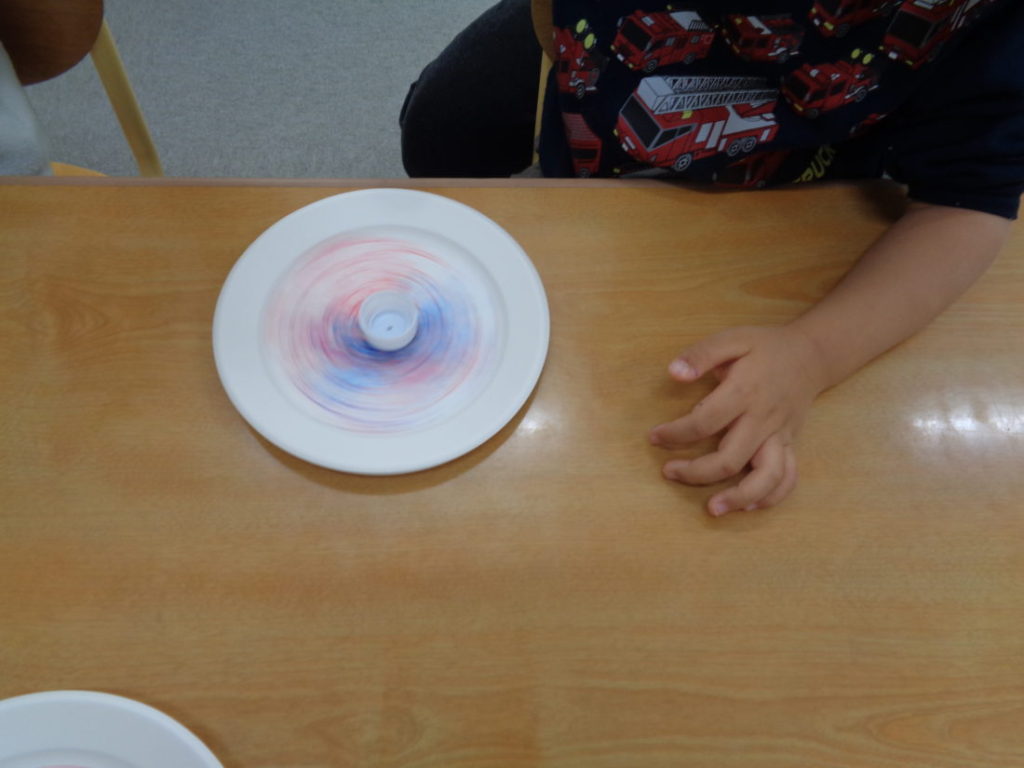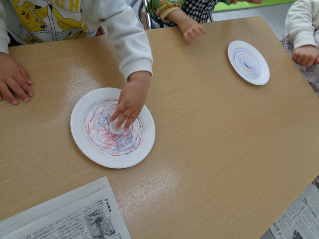 お友だちと一緒に回そうと一つの机で「せーの!」と掛け声。