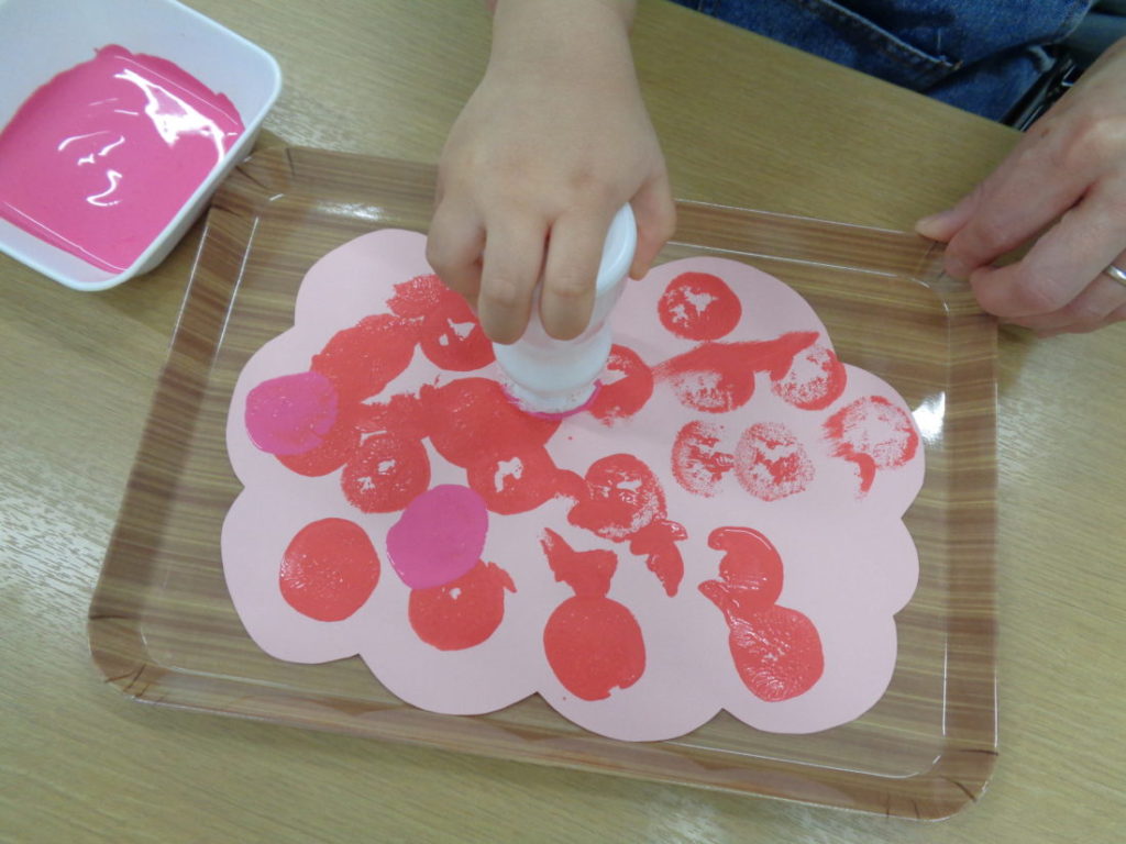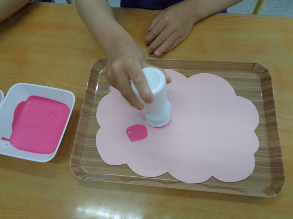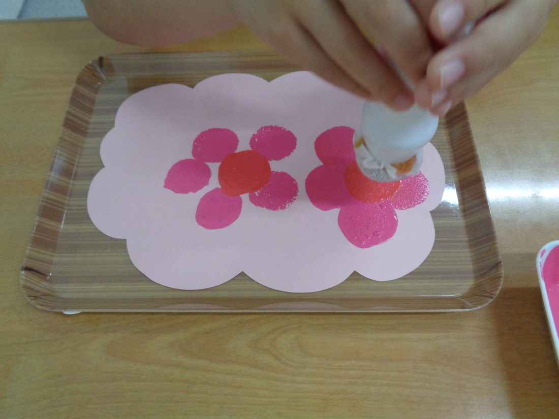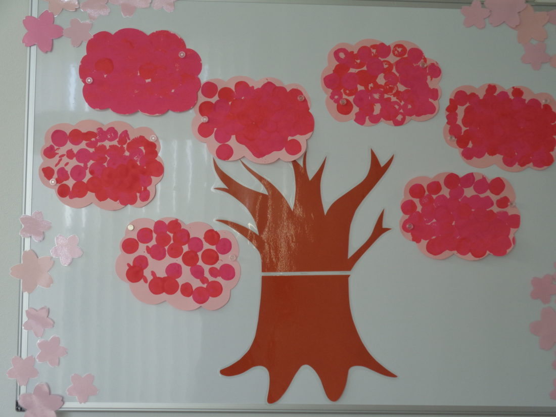 2026年3月27日 / 最終更新日時 : 2026年4月2日 児童発達支援 桜 タンポ 桜の花が満開になった今週。 今日は桜の制作を行いました。 タンポを握ってそおっとぽん。まあるい形にピンクの丸。 ニュアンスの違う2色のピンクがまじりあう姿を、じっと見つめる子どもたち。 みんなの桜を合わせたら、大きな桜が満開です。